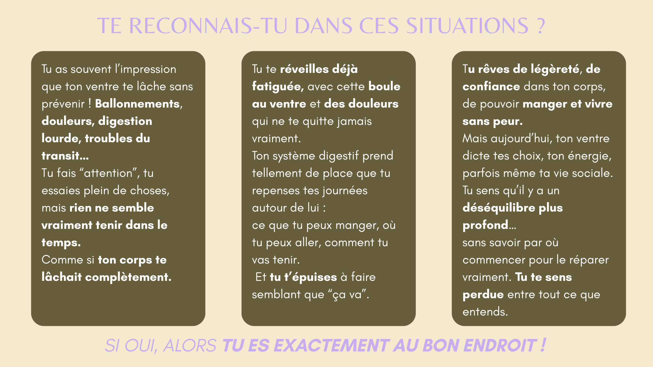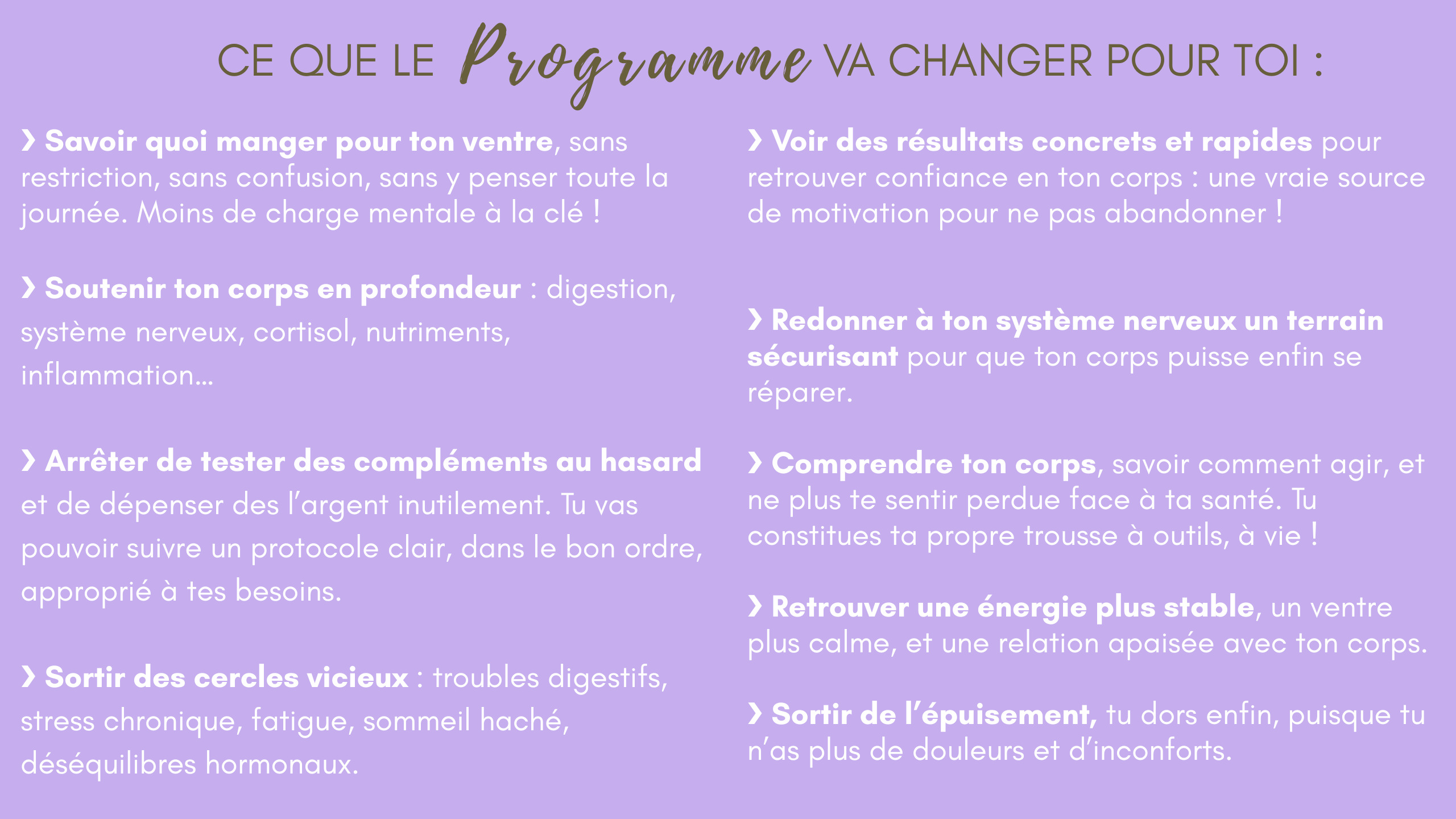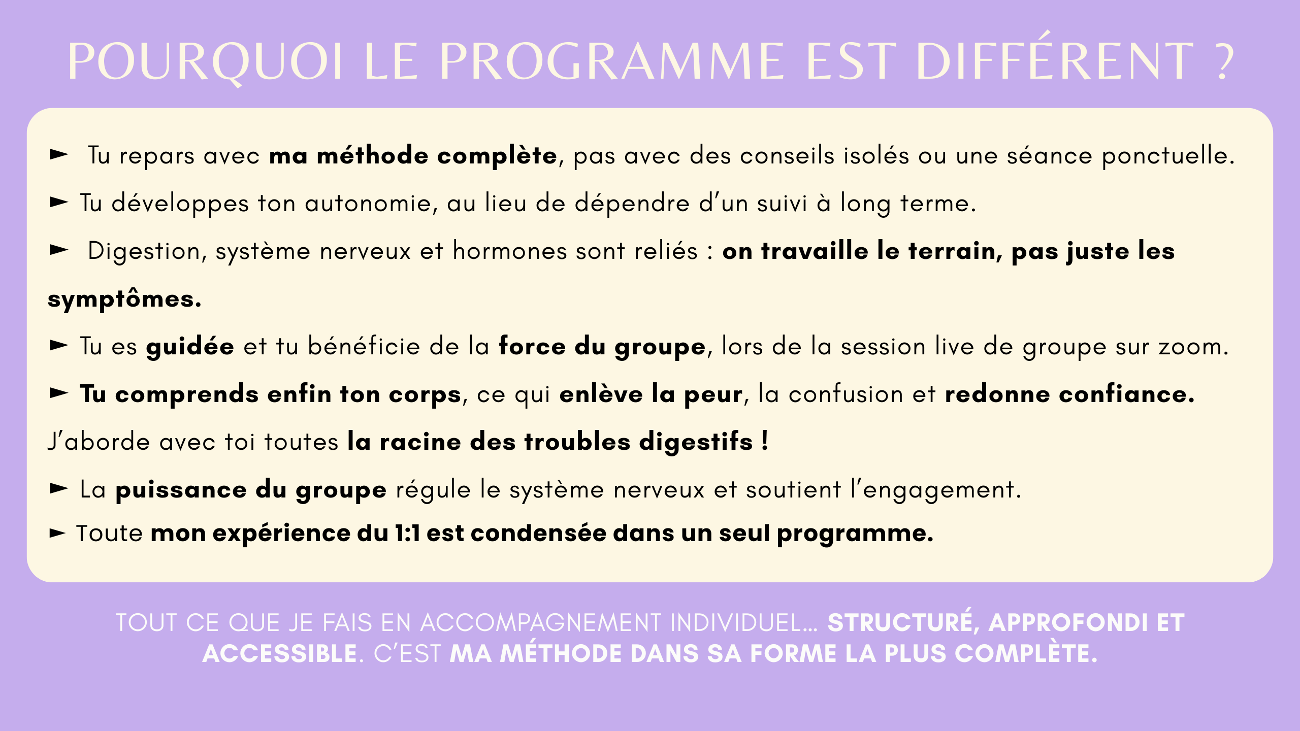 Ce programme a été conçu pour obtenir des changements de vie durables et de réelles amélioration sur vos inconforts digestifs !
