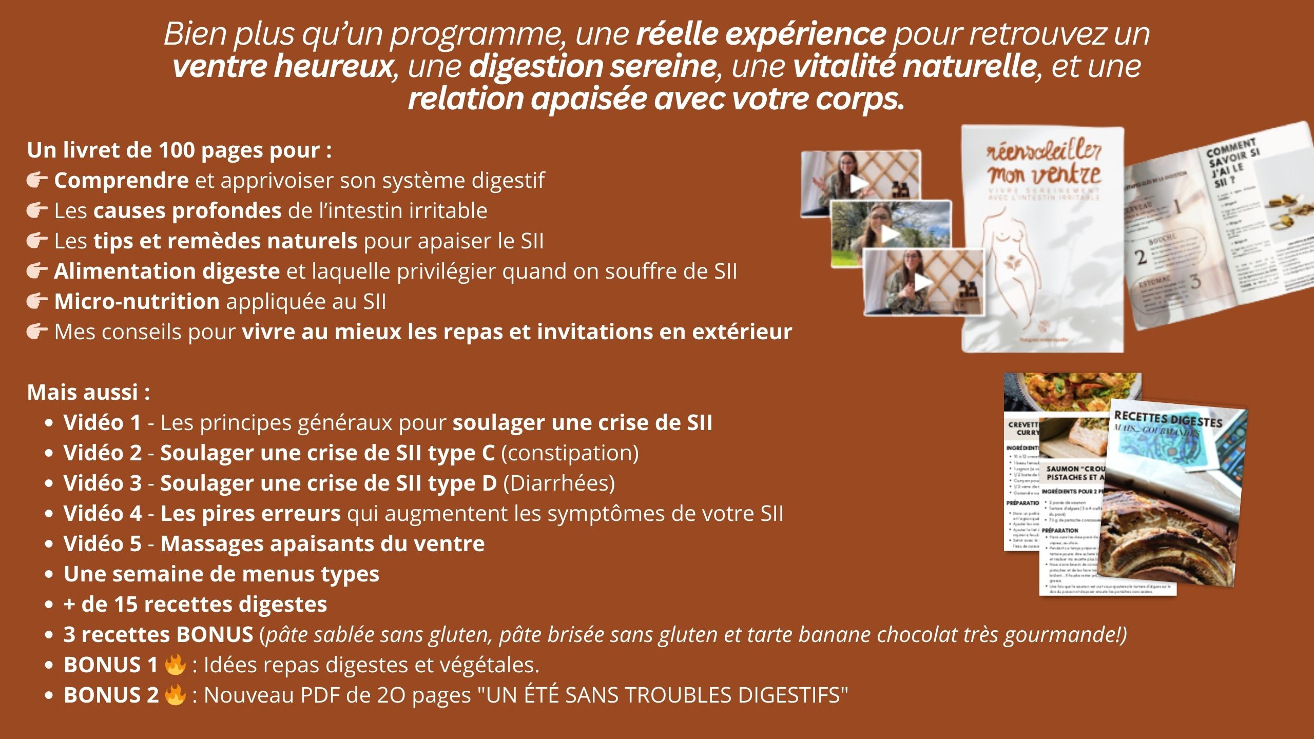 J’ai conçu ce programme complet pour les personnes qui souffrent de troubles digestifs et plus précisément d’intestin irritable ou colopathie fonctionnelle et depuis la mise à jour 2025, pour les personnes atteintes de SIBO.