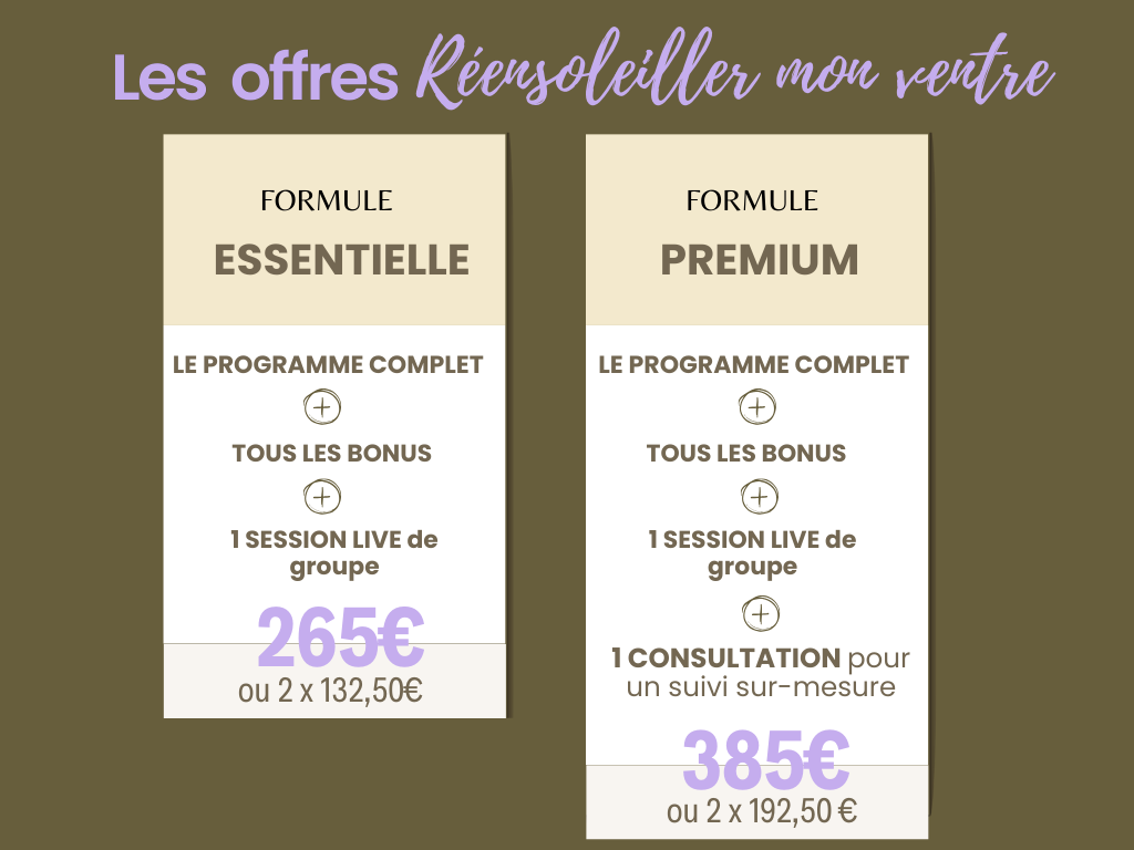 Je vous propose dans les deux formules de payer en 2 fois sans frais pour rendre le programme accessible à toutes.