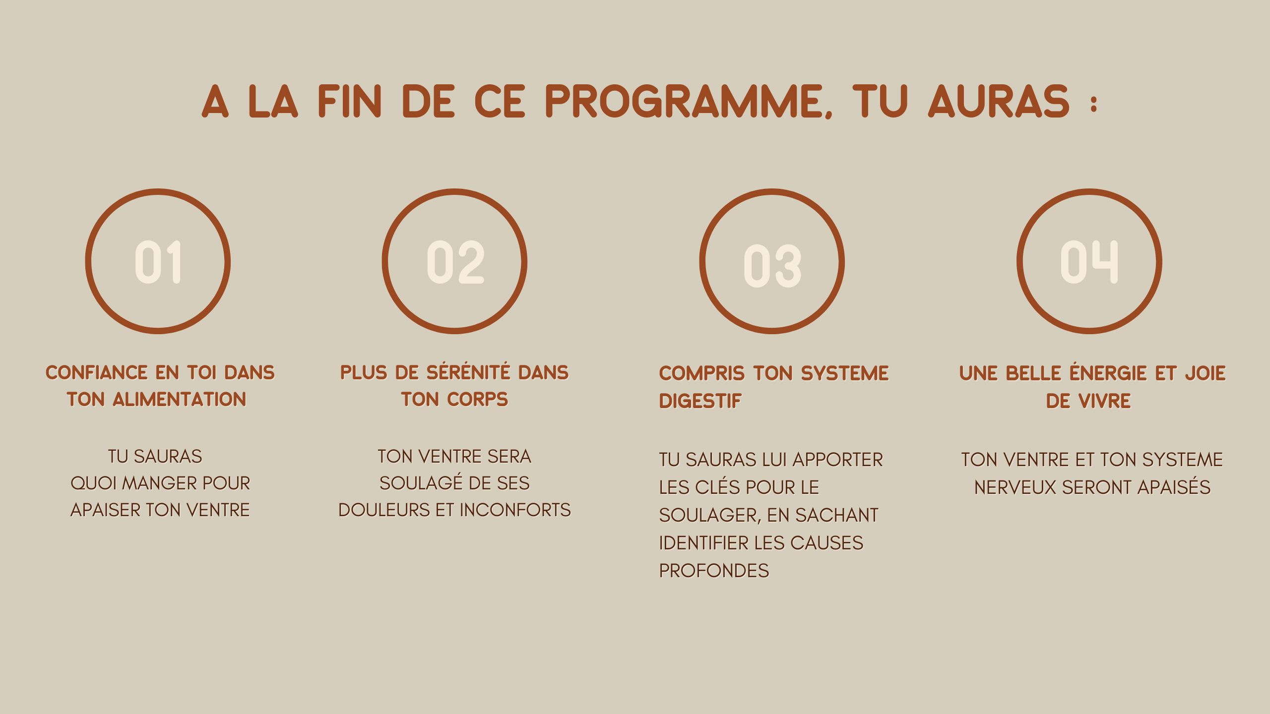 Le seul programme qui t'enseigne à sortir de tes troubles digestifs avec douceur, bienveillance et sans frustrations. Mais aussi, qui te ré-apprends l'alimentation digeste pour retrouver sérénité face à ton assiette et qui englobe l'importance de la régulation du système nerveux dans les troubles inflammatoires et chroniques. Il va t'apporter une réelle sérénité, confiance et soulagement dans ton corps.